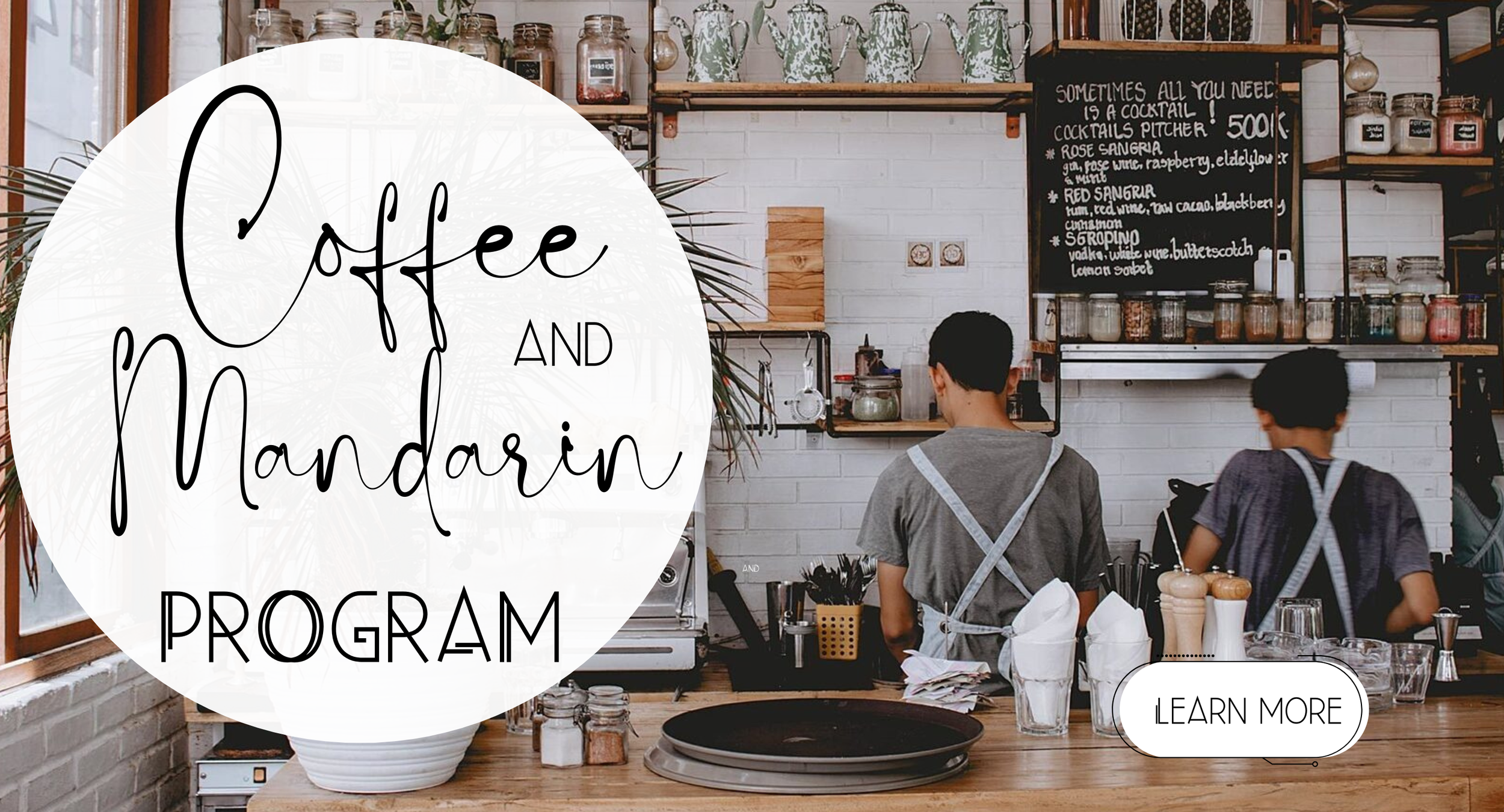 We offer small-group conversation classes (including our popular Coffee + Mandarin series), specialized Chinese for Business Travelers sessions, and one-on-one comprehensible input lessons that help you build fluency through clear, engaging language exposure.